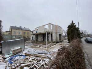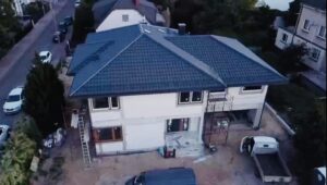 Realizacja w Warszawie. Inwestorzy zdecydowali się na mix kolorów winchester oraz antracyt. Stolarka okienna – winchester, drzwi mix kolorów, brama antracyt oraz rolety winchester.