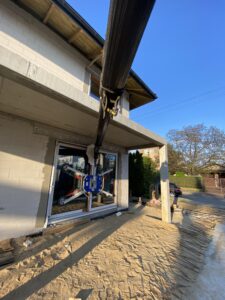 Klienci zdecydowali się na 4 okna przesuwne – 3 w systemie SMOOV oraz 1 w najcieplejszej wersji HST, duży fix o szerokości 300 cm w salonie oraz kilkanaście okien tradycyjnych.